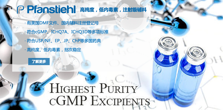 “熱烈祝賀Pfanstiehl的注射級甘氨酸Glycine(G-140)喜獲CDE登記號F20250000403, 這是Pfanstiehl產品獲得的第18個CDE登記號!”甘氨酸在醫藥輔料制劑中應用廣泛,, 可作為緩沖劑,增溶劑,穩定劑等,具有諸多優勢。Pfanstiehl秉承一貫高品質理念,為滿足全球生物制藥行業對于高品質甘氨酸的需求,隆重推出的注射級甘氨酸Glycine (G-140), 具有超高純度,超低內毒素,超低金屬殘留的特點,單獨檢測29種金屬離子,并且新增DNA,RNA,DNA酶,RNA酶和脂肪酶,亞硝酸鹽等多項質量指標的檢測,符合多國藥典規定(USP, EP, BP, JPE, ChP),可用于生物治療性藥物和疫苗的生產。產品信息:· 產品名稱:Glycine, High Purity, Low Endotoxin, Low Metals, USP, EP, BP, JPE, ChP (G-140)· 中文名稱:甘氨酸· 分子式:C2H5NO2· 分子量:75.07 g / mol· CAS號:56-40-6· 產品貨號:G-140產品特點: · 超高純度,超低內毒素,超低微生物含量,超低金屬雜質殘留· 質量指標新增DNA,RNA,DNA酶,RNA酶,脂肪酶和亞硝酸鹽檢測· 符合多國藥典:USP, EP, BP, JPE, ChP· 符合ICH Q3D標準· 符合GMP標準· 已獲DMF和CDE登記號 產品應用:· 緩沖劑· 穩定劑· 增溶劑如果您對Pfanstiehl注射級別Glycine G-140感興趣,歡迎聯系Pfanstiehl 中國區代理商北京西美杰科技有限公司獲得如下詳細的產品概況說明文件和測試樣品。Pfanstiehl Inc.最新產品系列如下,歡迎聯系北京西美杰科技有限公司獲取100g裝免費樣品。北京西美杰科技有限公司為Pfanstiehl中國代理,為客戶提供完善的技術支持與售后服務。歡迎撥打西美杰客服電話400-050-4006或者登陸網站www_xmjsci_com.zggznpf.com了解更多信息。 更多>